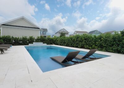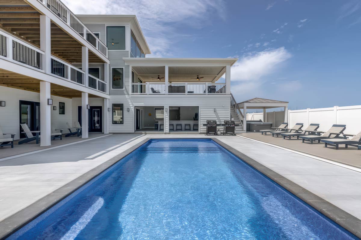Having multiple entries and exit points has several advantages. More design freedom with the pool and patio layout is one big advantage. If you can only access the pool at one corner, then that naturally limits the position that the pool can be in. Multiple entries and exits are also ideal for those who may tire quickly while swimming.